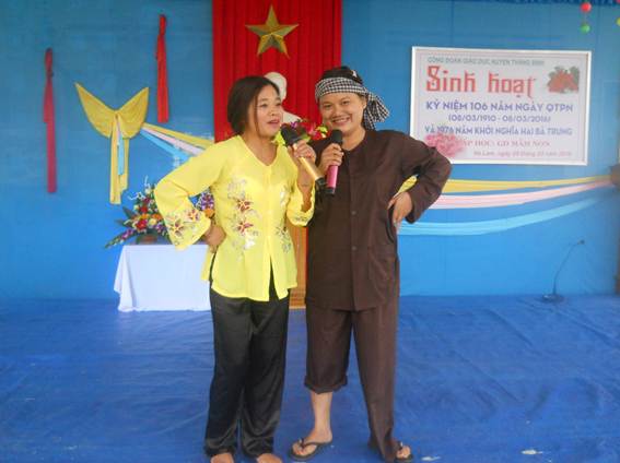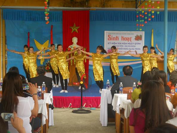 Năm nay, buổi lễ sinh hoạt kỷ niệm 8/3 càng thêm phần ý nghĩa khi Công đoàn ngành giáo dục huyện tổ chức các phần thi như Cặp đôi hoàn hảo, Đoán ý đồng đội, Phần thi giành cho khán giả…mang lại không khí vui tươi, sôi nổi và thắm tình đoàn kết trong buổi sinh hoạt.