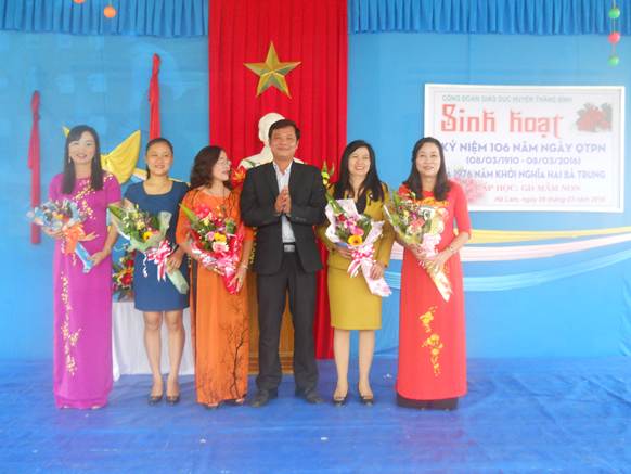 Thầy giáo Phan Văn Tuyển – Trưởng phòng GD & ĐT huyện tặng hoa chúc mừng