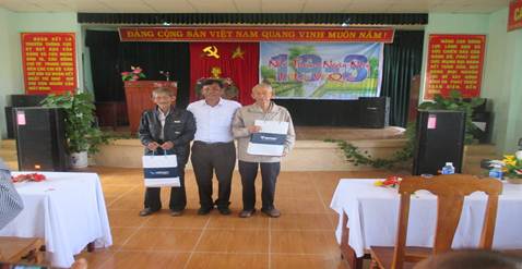 Ông Nguyễn Vân Tá - Đại diện Hội đồng hương Bình Sa trao quà cho các đ/c lão thành cách mạng