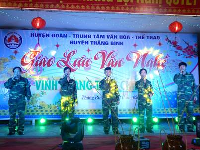 Ảnh: Giao lưu văn nghệ trước khi thanh niên lên đường nhập ngũ là hoạt động được tổ chức thường niên. Ảnh: Huyện đoàn Thăng Bình