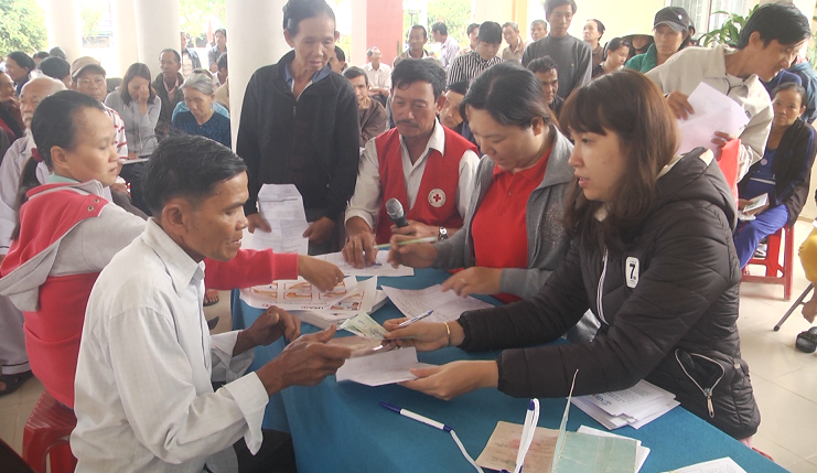 (Ảnh: Cấp tiền mặt mua lương thực, nhu yếu phẩm cho các hộ gia đình bị ảnh hưởng bởi cơn bão số 12 .)