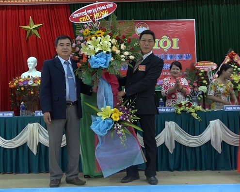 Ảnh: Lãnh đạo UBMTTQ Việt Nam huyện trao hoa chúc mừng