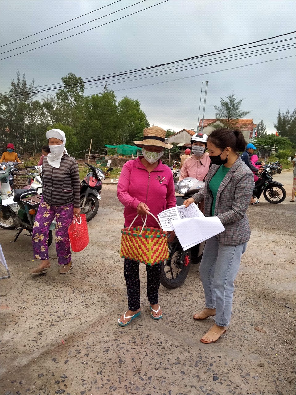 (Ảnh: Hình ảnh chị em phụ nữ thôn Hà Bình, xã Bình Minh được tuyên truyền hướng dẫn trong một buổi chợ.)