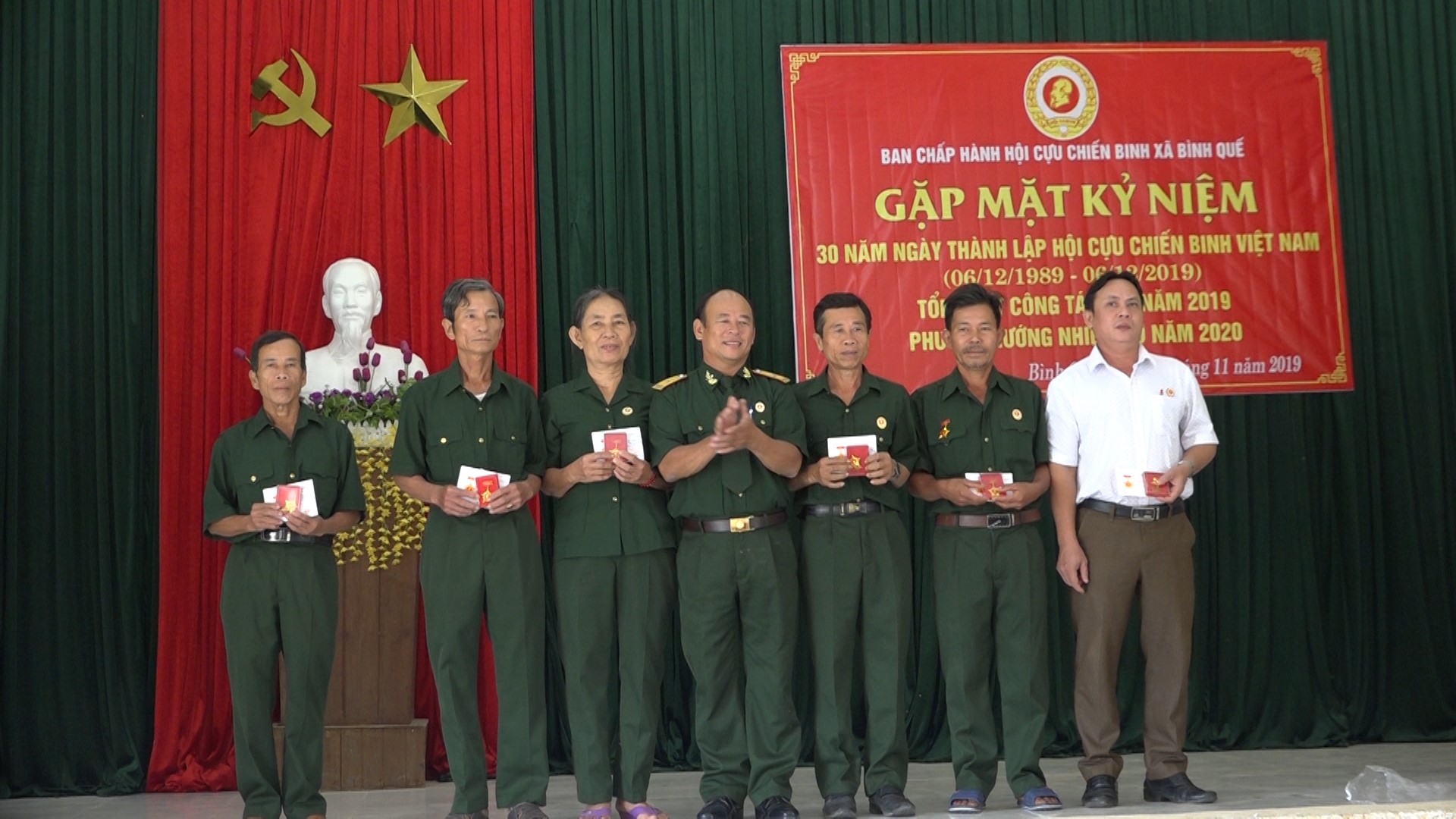 (Ảnh: Lãnh đạo xã Bình Quế trao Kỷ niệm chương cho các đồng chí Cựu chiến binh)