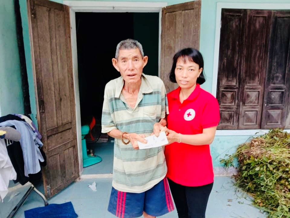 (Ảnh: Chị Ngân thay mặt mạnh thường quân trao quà đến với những trường hợp khó khăn)