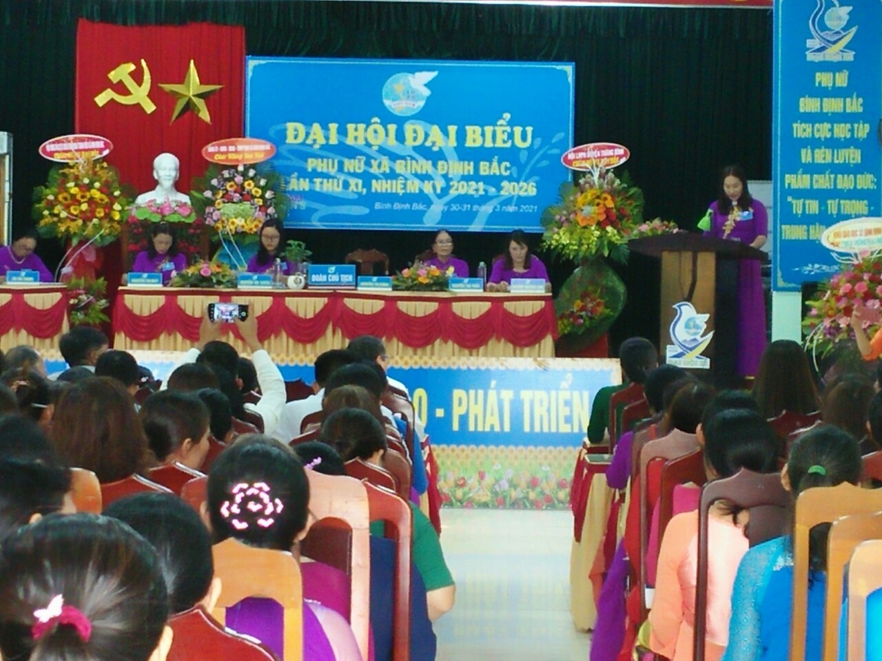 Phát biểu chỉ đạo đại hội, đồng chí Phan Thị Thùy Trang – HUV, Chủ tịch Hội LHPN huyện và đồng chí Lê Văn Để - Bí thư Đảng ủy xã Bình Định Bắc đánh giá cao những kết quả Hội LHPN xã nhà đạt được trong nhiệm kỳ qua. Đồng thời đề nghị, Hội LHPN xã tiếp tục tập trung đổi mới nội dung, phương thức hoạt động; đẩy mạnh các phong trào thi đua, các cuộc vận động, phát huy vai trò của phụ nữ tham gia thực hiện mục tiêu giảm nghèo bền vững, nâng cao chất lượng cuộc sống. Thực hiện tốt hoạt động giám sát, phản biện các chủ trương, chính sách liên quan đến phụ nữ và trẻ em, góp phần thực hiện thắng lợi mục tiêu, chỉ tiêu, nhiệm vụ Nghị quyết Đại hội phụ nữ xã nhiệm kỳ 2021-2026 đề ra.