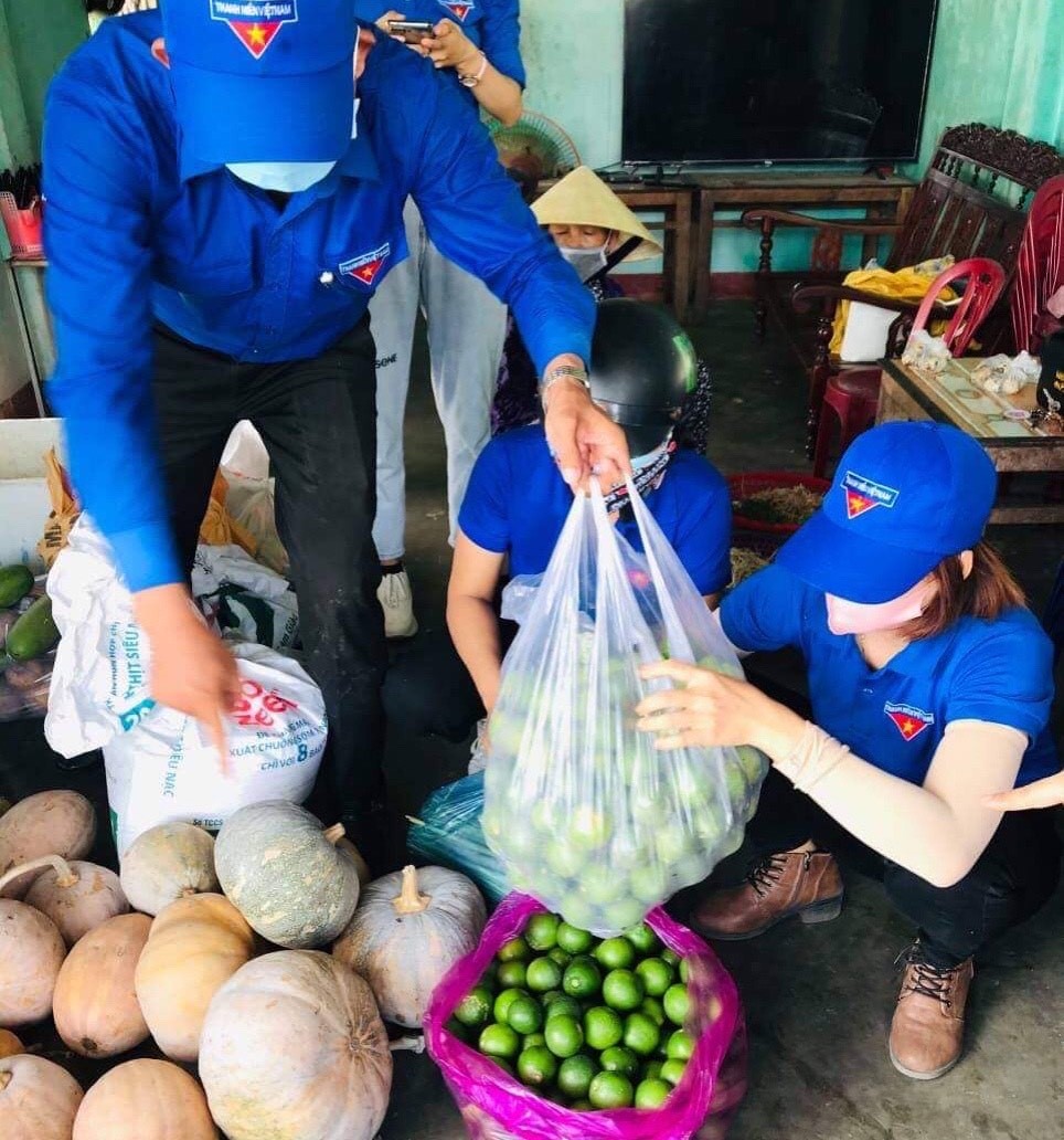(Ảnh: Đoàn xã Bình Trung vận động bà con nhân dân ủng hộ rau củ quả)