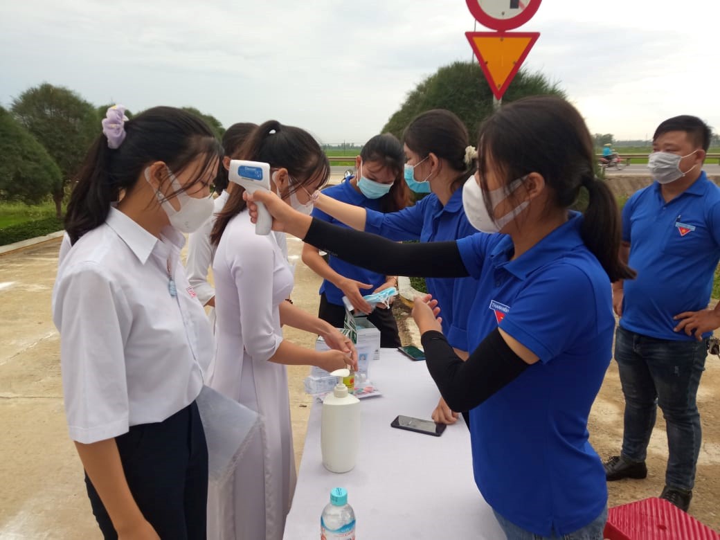 Đồng hành cùng các em học sinh trong đợt thi tốt nghiệp THPT 2021 trên địa bàn huyện, 150 bạn ĐVTN toàn huyện đã tham gia đội hình tiếp sức mùa thi tại 5 điểm thi gồm Trường THPT Tiểu La, Nguyễn Thái Bình, Lý Tự Trọng, Hùng Vương và Trường THPT Thái Phiên. Huyện đoàn Thăng Bình đã kịp thời đến thăm hỏi, tặng 70 thùng nước suối, 10 thùng nước sát khuẩn, 1000 khẩu trang và 2,5 triệu đồng cho các đội hình tiếp sức mùa thi. Đồng thời, tại các điểm thi, các bạn đoàn viên thanh niên hỗ trợ việc đo thân nhiệt, hướng dẫn các thí sinh rửa tay sát khuẩn, đeo khẩu trang, tiếp nước uống trước khi bước vào khu vực thi.