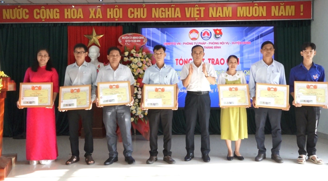 Năm 2024, Ủy ban MTTQ Việt Nam các cấp trong huyện tiếp tục tích cực triển khai thực hiện hiệu quả công tác thông tin, tuyên truyền; đổi mới cả về nội dung và hình thức; tăng cường đăng tải tin bài trên Trang cộng đồng Fanpage - Facebook của MTTQ Việt Nam các cấp trong huyện và Trang thông tin điện tử Mặt trận huyện với 232 tin bài, hơn 1.000 người theo dõi, hằng tuần có hơn 2.000 lượt người tiếp cận. Hưởng ứng ngày Pháp luật Việt Nam, Ủy ban MTTQ Việt Nam huyện chủ trì phối hợp Phòng Tư pháp, Phòng Nội vụ và Huyện đoàn Thăng Bình tổ chức cuộc thi trực tuyến “Tìm hiểu Luật Thực hiện dân chủ ở cơ sở”, có 6.777 thí sinh đăng ký tài khoản tham gia dự thi. Qua cuộc thi đã góp phần tuyên truyền, phổ biến sâu rộng nội dung Luật Thực hiện dân chủ ở cơ sở và các quy định của pháp luật về thực hiện dân chủ ở cơ sở đến đông đảo cán bộ, đảng viên, công chức, viên chức, đoàn viên, hội viên và Nhân dân trên địa bàn huyện.