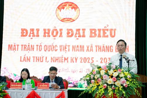 Phát biểu chỉ đạo tại Đại hội, đồng chí Lê Trí Thanh - Ủy viên Ban Thường vụ Thành ủy, Chủ tịch Ủy ban MTTQ Việt Nam thành phố đánh giá cao vai trò tập hợp, phát huy sức mạnh khối đại đoàn kết toàn dân của Mặt trận và đề nghị tiếp tục đổi mới nội dung, phương thức hoạt động, nâng cao hiệu quả giám sát, phản biện xã hội, góp phần thúc đẩy phát triển kinh tế - xã hội địa phương. Đồng chí Nguyễn Văn Lượm - Bí thư Đảng ủy, Chủ tịch HĐND xã khẳng định: Đảng ủy xã luôn quan tâm, tạo điều kiện để Mặt trận và các tổ chức thành viên hoạt động hiệu quả, đồng thời mong muốn đội ngũ cán bộ Mặt trận phát huy tinh thần trách nhiệm, gắn bó mật thiết với Nhân dân; tiếp tục phát huy vai trò, thực hiện tốt nhiệm vụ trong tình hình mới; góp phần thực hiện thắng lợi Nghị quyết đại hội Đảng bộ xã Thăng Bình lần thứ I, nhiệm kỳ 2025-2030.