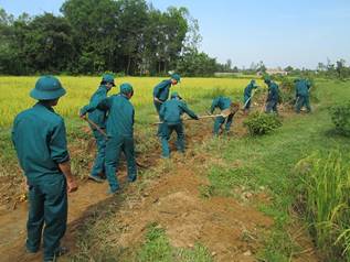 Lực lượng vũ trang xã Bình Chánh tham gia làm đường bê tông