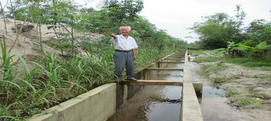 Ông Liên Cường đang đứng trên tuyến kênh Tứ Sơn (đoạn qua nhà ông)