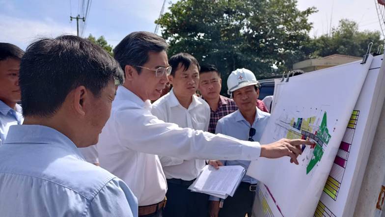 (Đồng chí Phó Chủ tịch UBND thành phố Đà Nẵng Trần Chí Cường kiểm tra tiến độ GPMB dự án cải tạo, nâng cấp Quốc lộ 14E tại xã Thăng Bình)