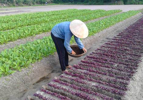 Ảnh: Bà Lê Thị Lộc trên cánh đồng rau của mình