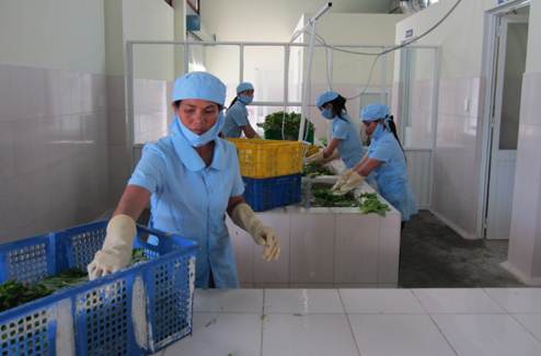 Ảnh: Sơ chế rau tại HTX rau sạch Mỹ Hưng
