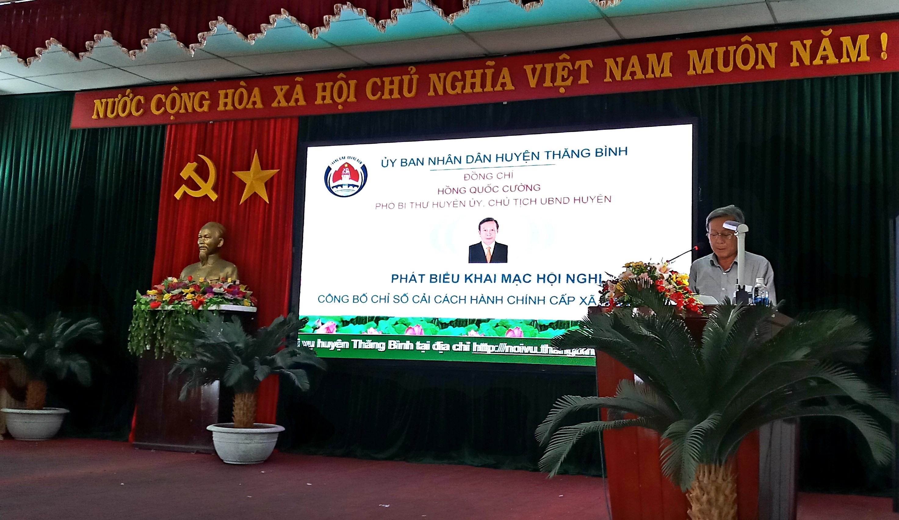 Phát biểu khai mạc tại Hội nghị đồng chí Hồng Quốc Cường đánh giá cao kết quả thực hiện công tác cải cách hành chính năm 2017. Thời gian qua, công tác cải cách hành chính của huyện Thăng Bình luôn được các cấp, các ngành của huyện chú trọng và đã có nhiều chuyển biến tích cực, cả về tổ chức triển khai và kết quả đạt được trên từng lĩnh vực, đóng góp quan trọng vào thành tựu phát triển kinh tế - xã hội của huyện.