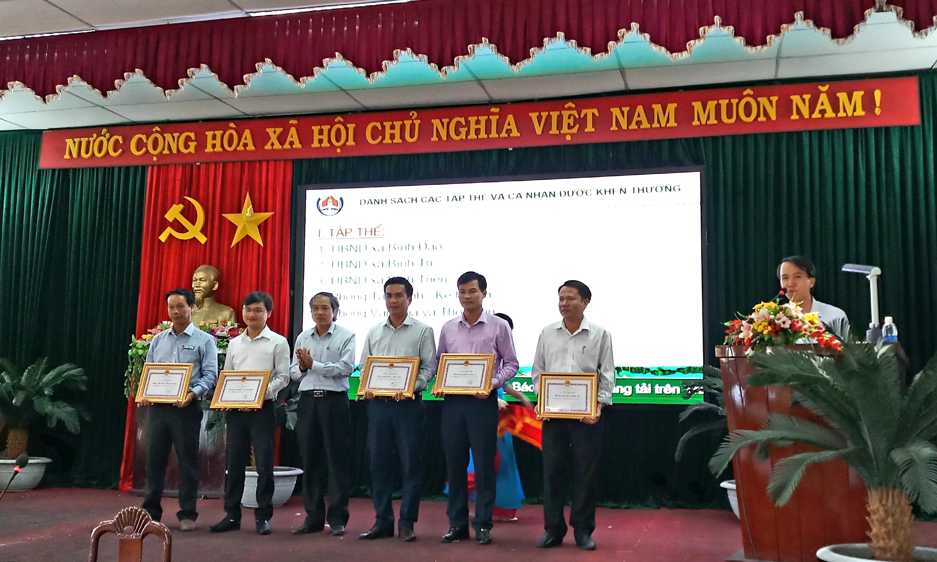 Lãnh đạo huyện tặng giấy khen cho các tập thể có thành tích tốt