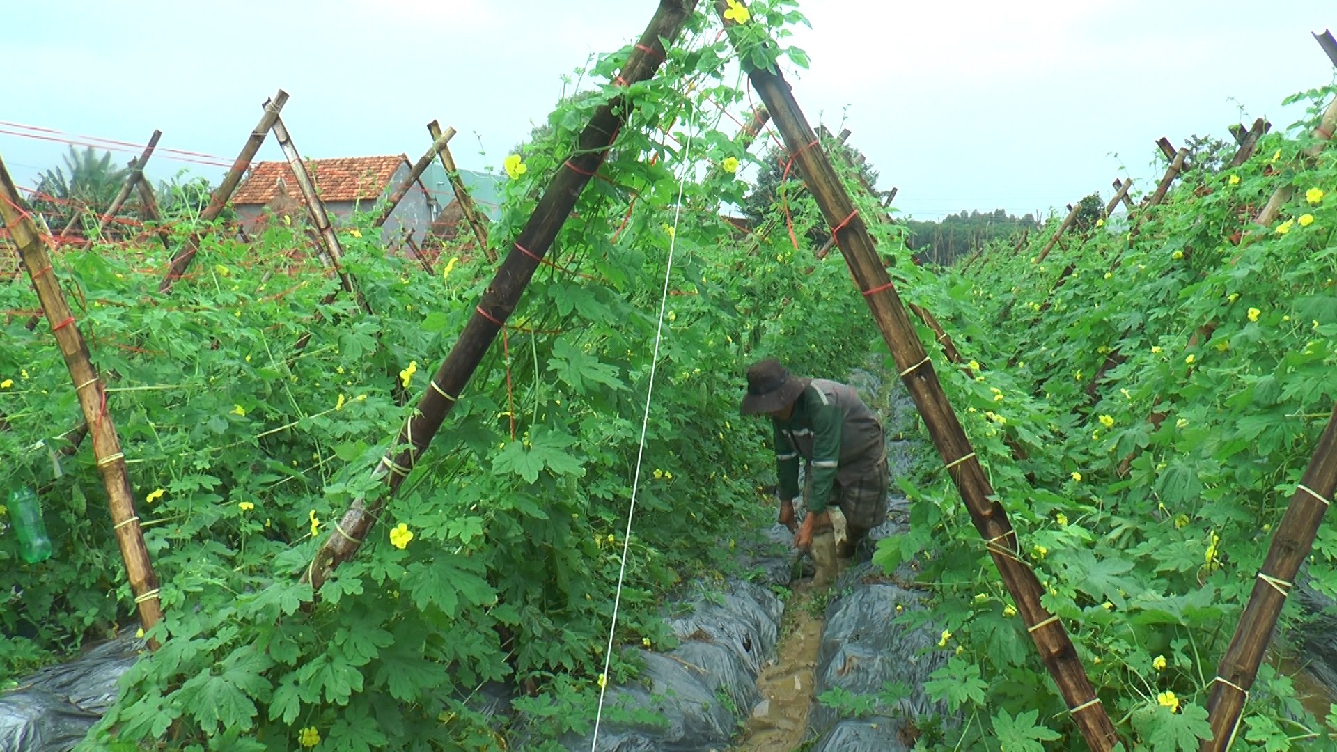 (Ảnh: Vườn khổ qua đang vào mùa thu hoạch của ông Nguyễn Xô)