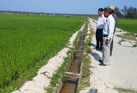 (Ảnh: Xã Bình Sa đã xây dựng thêm nhiều tuyến kênh bê tong để sử dụng nước tiết kiệm từ Trạm bơm Tứ Sơn)