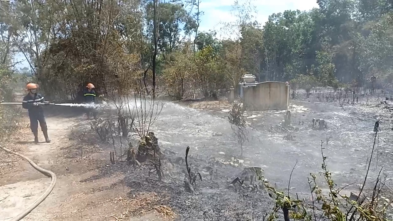 Lực lượng Cảnh sát phòng cháy chữa cháy Công an tỉnh dập tắt đám cháy rừng tại xã Bình Phục
