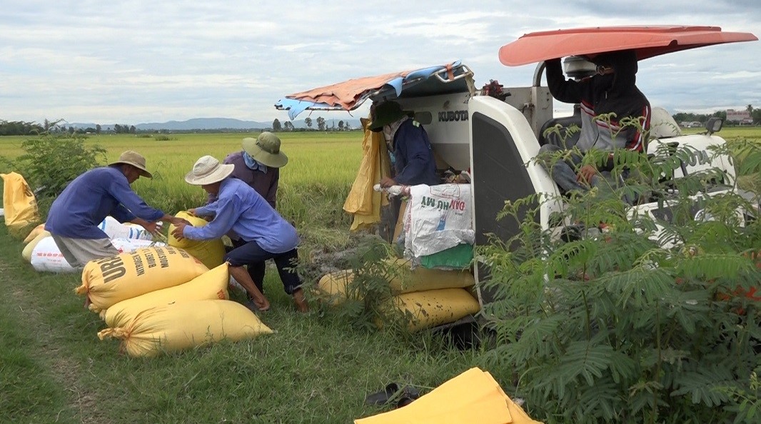 Ông Hồ Ngọc Quảng- Phó Giám đốc Trung tâm Kỹ thuật Nông nghiệp huyện cho biết, hiện nay, toàn huyện đã thu hoạch hơn 4.600ha lúa trên tổng diện tích hơn 8.300ha lúa. Trong khoảng 10- 15 ngày nữa sẽ gặt xong. Mặc dù mùa vụ qua, trên địa bàn huyện xuất hiện dịch bệnh như đạo ôn, cổ bông,… nhưng đó chỉ là diện tích nhỏ, cục bộ, không làm ảnh hưởng đến năng suất chung toàn huyện. Đồng hành cùng nông dân, Trung tâm Kỹ thuật Nông nghiệp thường xuyên có những khuyến cáo gửi các địa phương, hướng dẫn bà con về kỹ thuật thâm canh, phòng trừ sâu bệnh. Mưa dầm thấm lâu, nhờ đó, bên cạnh những kinh nghiệm truyền thống, nông dân đã áp dụng cơ giới hóa, kỹ thuật thâm canh mới, cách lựa chọn loại giống phù hợp với từng chân đất để đem lại mùa vụ bội thu. Ông Quảng cho biết thêm: “Năm nay, năng suất bình quân là 59 tạ/ha, cao hơn năm ngoái 1,2- 1,3 tạ. Cơ bản nhất là nhờ thời vụ, gieo sạ tập trung, bộ giống trung ngày, phù hợp với chân đất của Thăng Bình, cùng với đó, trình độ thâm camh của nông dân đã cải thiện.”