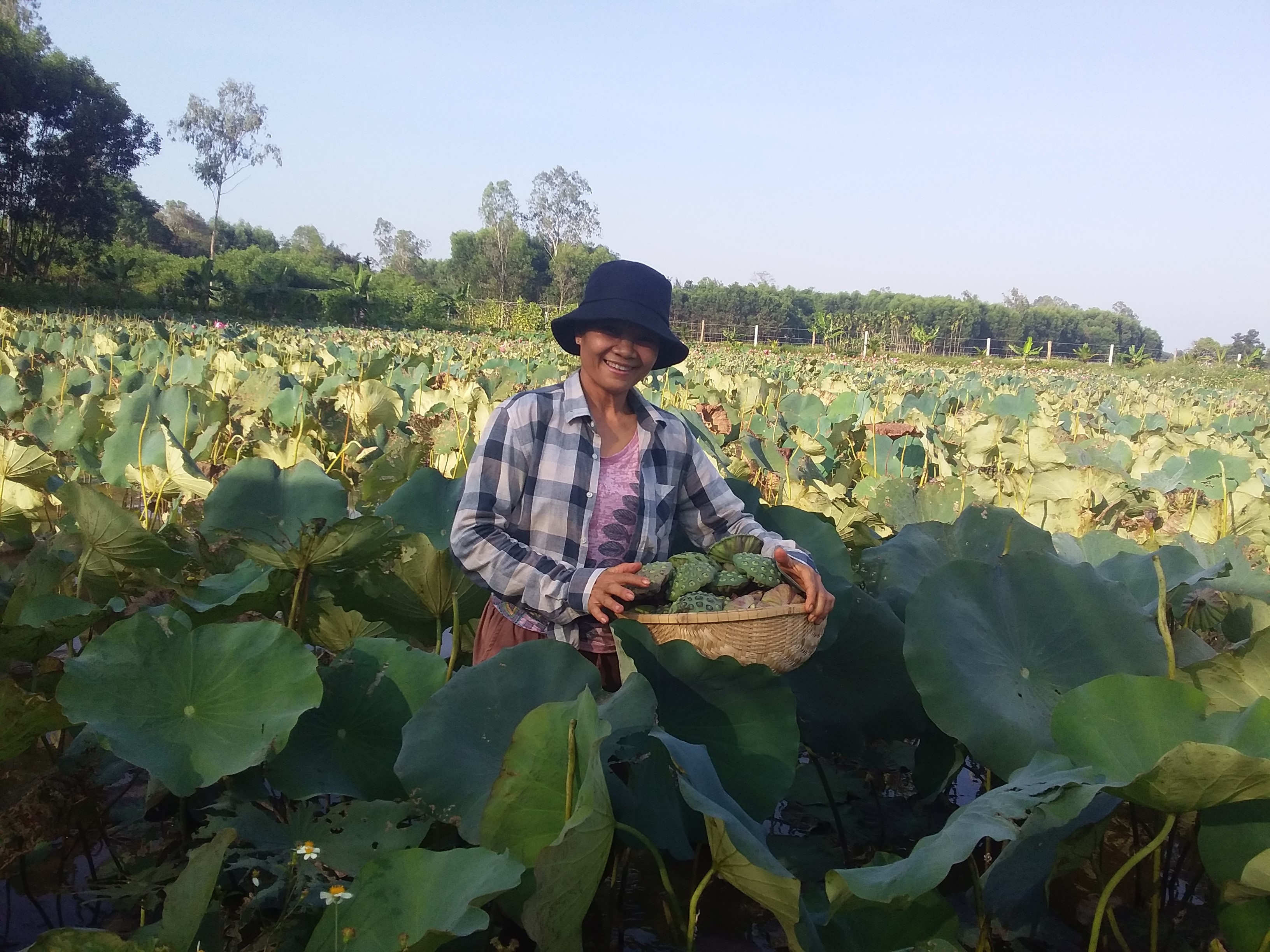Nhận thấy vườn nhà vẫn còn 2ha trồng keo nhưng hiệu quả kinh tế không cao, chị Luyến cải tạo thành vườn trồng các loại cây ăn quả và rau xanh theo hướng sản xuất hữu cơ. Đầu năm 2019, chị Luyến thuê nhân công đưa máy móc vào san ủi mảnh vườn, trong đó 5 sào đất dùng trồng sen; 7 sào đất khác dùng để nuôi cá. Phần đất còn lại chị trồng các loại rau quả như xà lách, ngò, đu đủ, mướp đắng… Chị Luyến cũng mua cây 50 mít Thái, 20 cây ổi tím, một số cau, dừa xiêm, đinh lăng về để trồng. Hiện nay, diện tích trồng sen đã cho thu hoạch được 2 vụ. Ở thời điểm này, 5 sào sen đã cho thu hoạch hơn 1 tạ sen thương phẩm với giá bán 150.000 đồng/kg. Còn với các loại rau trong vườn, hằng ngày chị Luyến đều bỏ cho các mối quen.