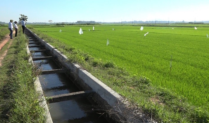 Cánh đồng ở tổ 1 và tổ 2 thôn Hiền Lương xã Bình Giang, đã là giữa vụ Hè thu, nhưng mực nước ở các chân ruộng vẫn liên tục được giữ ở mức 5cm, dù đây là chân ruộng cách đường dẫn của tuyến kênh chính hơn 12km. Lão nông Lưu Trí Dự, cũng là thành viên trong tổ thủy nông của xã Bình Giang khẳng định, năm năm trở lại đây, chưa bao giờ việc canh tác lúa của bà con nơi đây gặp trở ngại vì thiếu nước. “ Mỗi ngày, đều phải có 2 thành viên túc trực để hướng dẫn bà con lấy nước đúng cách. Khi lượng nước vừa xấp mặt chân ruộng, chúng tôi sẽ đóng lại để dẫn nước đến những chân ruộng nằm xa kênh hơn”- ông Dự nói.