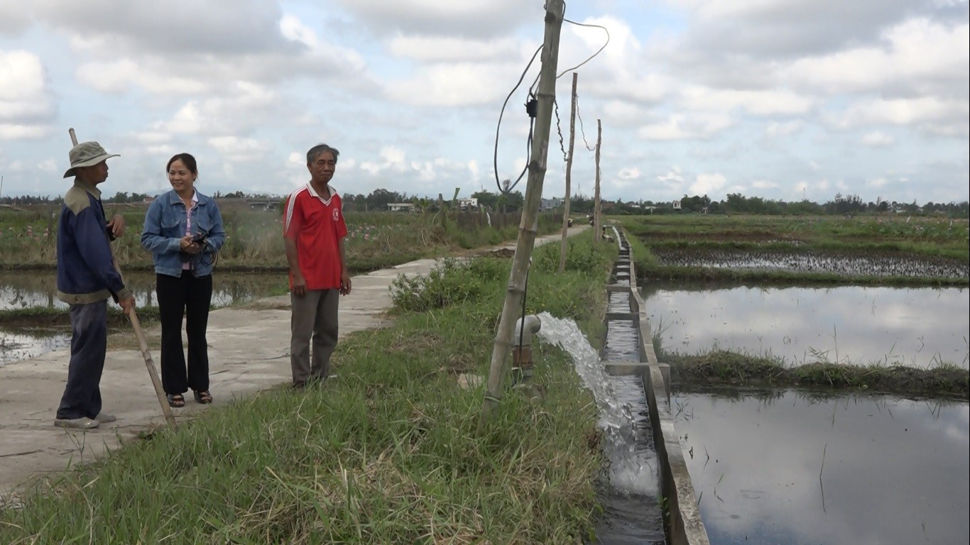 Do chủ động nguồn nước tưới từ các giếng khoan do HTX NN Bình Đào (Thăng Bình) vận hành, bơm dẫn nước về tưới tại cánh đồng thôn Phước Long; những ngày qua, ông Hứa Đức Năm - ở tổ 8, thôn Phước Long (xã Bình Đào, Thăng Bình) đã ra đồng phát dọn cỏ, đắp bờ đón nước vào ruộng. Ông Năm cho biết, vụ hè thu này gia đình canh tác 2 sào ruộng, ở những năm trước, khi chưa có nước bơm từ giếng khoan của HTX NN Bình Đào thì vụ hè thu nông dân chúng tôi rất vất vả, mọi người phải thức đêm tát nước từ ao, đìa và chờ nhiều ngày liền mới có đủ lượng nước làm đất phục vụ sản xuất lúa hè thu. Còn những năm gần đây thì việc lo nước tưới thuận lợi hơn nhiều. “Khi nghe HTX NN Bình Đào thông báo đóng điện vận hành máy bơm nước phục vụ sản xuất, chúng tôi chỉ cần vát cuốc ra đồng làm những công việc giản đơn như phát dọn cỏ, đắp lại bờ vùng, bờ thửa cho ruộng, tránh để nước thất thoát theo hang cua, hang chuột, việc làm đất đã có máy móc của HTX làm, sau đó chúng tôi xuống giống” - ông Hứa Đức Năm nói.