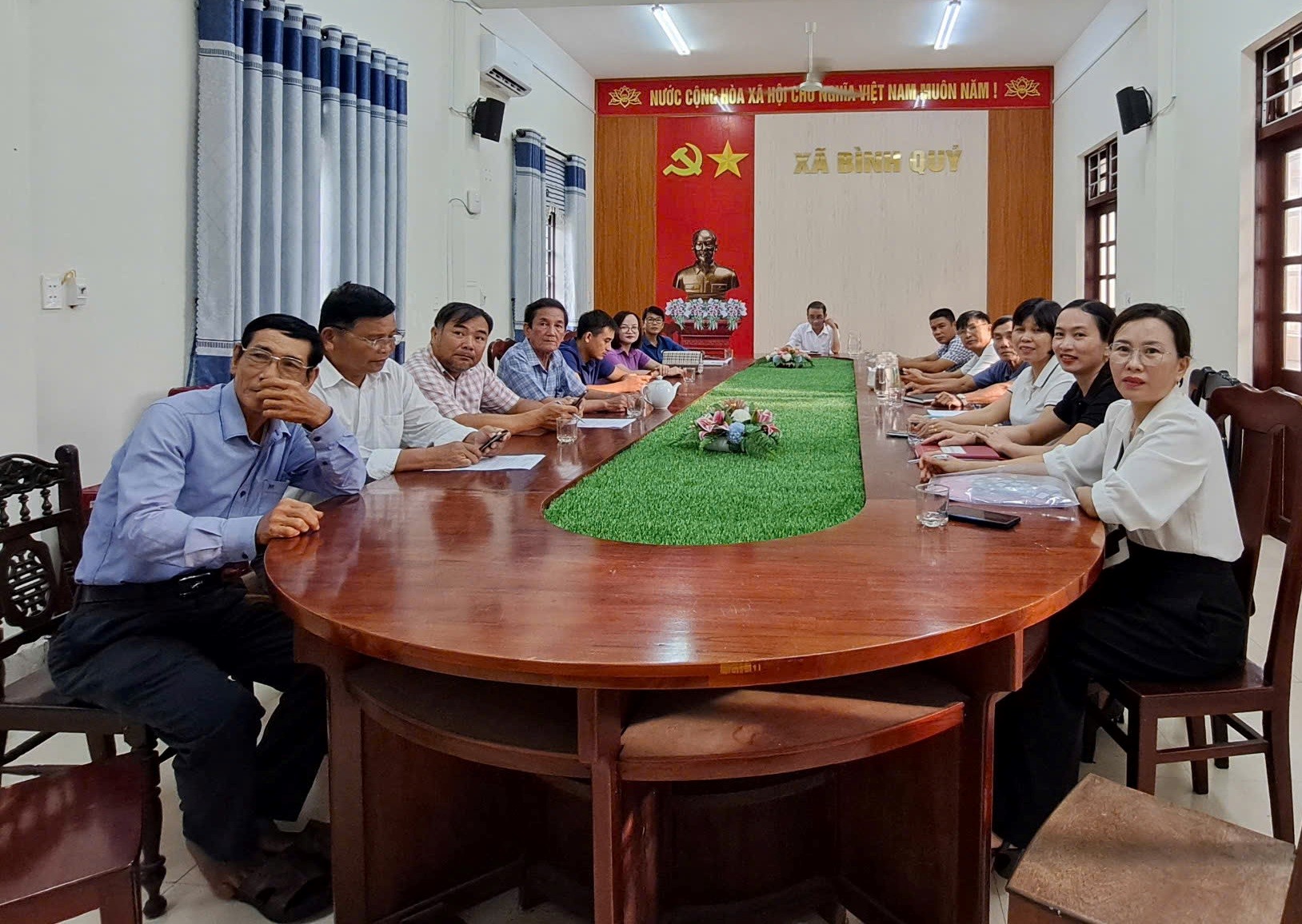 Lãnh đạo xã Bình Quý tham gia họp trực tuyến tại điểm cầu UBND xã