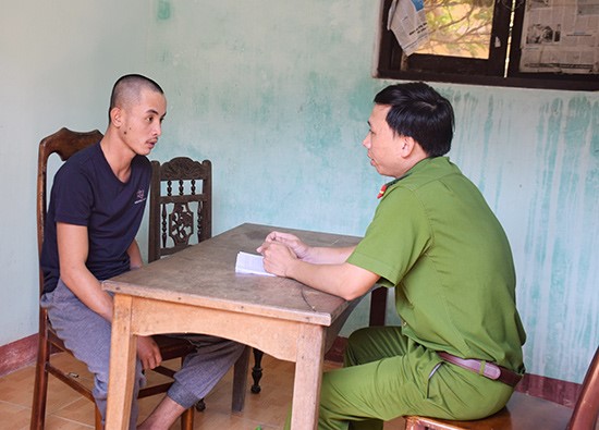(Ảnh: Công an huyện Thăng Bình đấu tranh với đối tượng để làm rõ hành vi phạm tội)