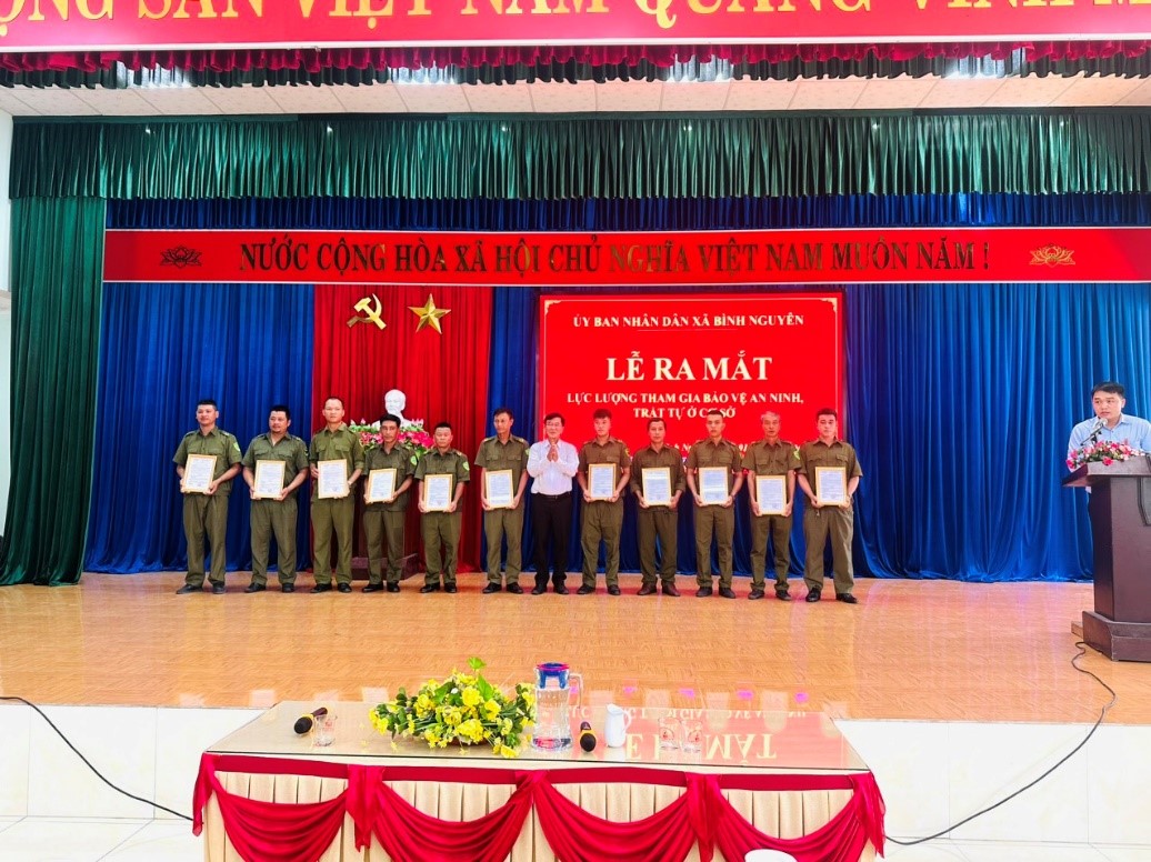 Hình ảnh ra mắt lực lượng tham gia bảo vệ an ninh trật tự ở cơ sở xã Bình Nguyên