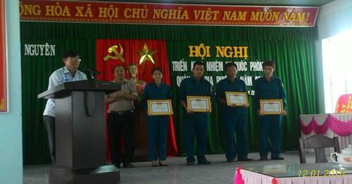 Tại hội nghị, Ban CHQS xã đã tặng Giấy khen cho 02 tập thể và 04 cá nhân có thành tích tốt trong thực hiện nhiệm vụ quốc phòng- quân sự địa phương năm 2015 và tổ chức đăng ký giao ước thi đua năm 2016.