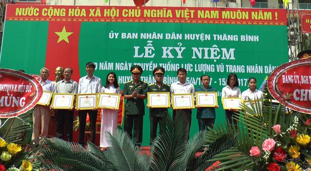 Trong những năm qua, cán bộ, chiến sĩ LLVT huyện đã không ngừng phát huy truyền thống quê hương anh hùng, hoàn thành xuất sắc mọi nhiệm vụ được giao. Chỉ tiêu giao quân hằng năm luôn đạt 100%. LLVT còn tham gia chương trình quốc gia về xây dựng nông thôn mới, trong giai đoạn 2012 – 2016 LLVT huyện đã đóng góp hơn 9 ngàn ngày công để làm công xây dựng các công trình nông thôn mới ở các địa phương, xây dựng 02 công trình “Đoàn kết quân dân” và tham gia giúp đỡ 04 hộ thoát nghèo bền vững với kinh phí hơn 100 triệu đồng. Dịp này, Ban Chỉ huy quân sự huyện cũng đã trao thưởng cho các cá nhân, đơn vị trên địa bàn đạt giải trong cuộc thi tìm hiểu “Lực lượng vũ trang huyện 70 năm chiến đấu và trưởng thành./.