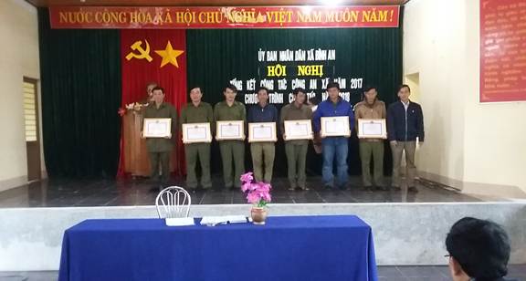 Đồng chí Lê Hồng Thiết -Chủ tịch UBND xã Bình An trao giấy khen cho các cá nhân đã hoàn thành xuất sắc trong công tác đảm bảo an ninh trật tự năm 2017