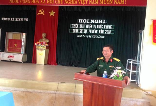 Năm 2017, được sự quan tâm lãnh chỉ đạo của các cấp, Ban chỉ huy (BCH) Quân sự xã Bình Tú đã tổ chức thực hiện tốt công tác QPQS địa phương. Thực hiện Nghị quyết, Chỉ thị của các cấp đến toàn thể cán bộ, đảng viên và lực lượng dân quân, dự bị động viên đảm bảo, duy trì nghiêm chế độ trực chỉ huy, trực sẵn sàng chiến đấu, trực bảo vệ các ngày lễ tết. Trong năm 2017, đã có hàng chục lượt cán bộ chiến sĩ lực lượng dân quân, dự bị động viên tham gia học tập nâng cao năng lực và trình độ toàn diện, nâng cao chất lượng huấn luyện sẵn sàng chiến đấu.