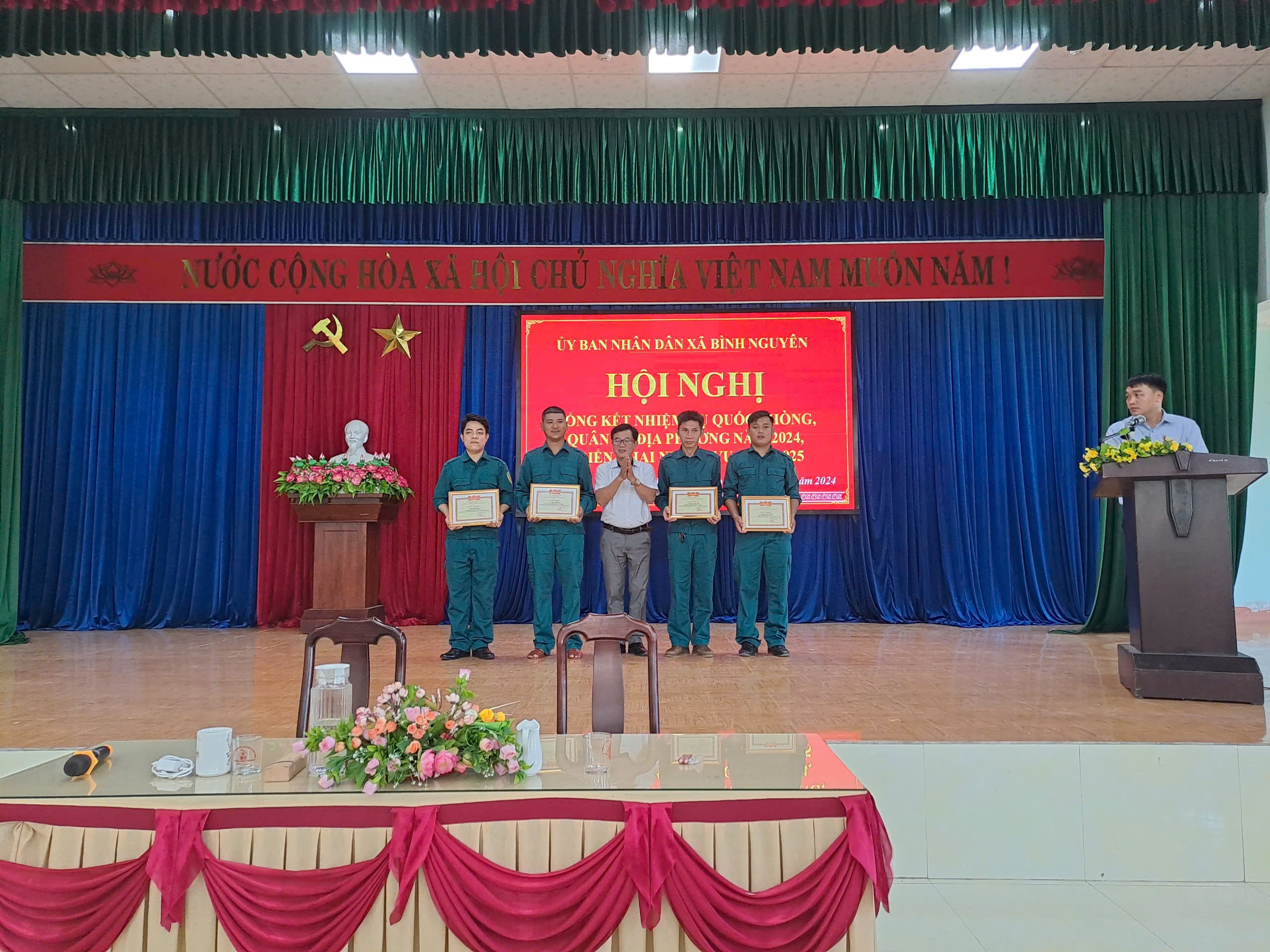Hội nghị cũng đã khen thưởng 2 tập thể và 4 cá nhân hoàn thành xuất sắc công tác quốc phòng, quân sự địa phương năm 2024.
