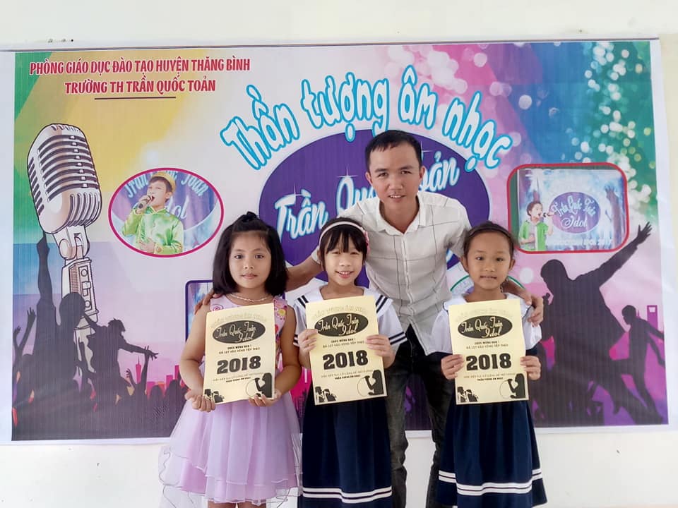 Đã 3 năm nay, thay vì tổ chức cuộc thi “Tiếng hát tiểu học” hay “Giọng hát hay” như trước đây, Liên đội Trường Tiểu học Trần Quốc Toản (thị trấn Hà Lam, Thăng Bình) tổ chức chương trình “Thần tượng âm nhạc Trần Quốc Toản idol”. Theo thầy giáo Nguyễn Văn Nhàn - Tổng phụ trách đội Trường Tiểu học Trần Quốc Toản, các cuộc thi hát cấp trường những năm trước đòi hỏi đầu tư tập luyện rất nhiều, từ diễn viên đến dàn dựng, trang phục, đạo cụ; giáo viên chủ nhiệm phải theo sát các em. Nhưng với “Thần tượng âm nhạc Trần Quốc Toản idol”, học sinh sẽ tự đăng ký, không giới hạn số lượng, chỉ cần có năng khiếu. “Cuộc thi được chia thành 2 vòng, sơ khảo và chung khảo. Ở vòng sơ khảo, các em hát không cần đầu tư quá nhiều. Chỉ cần có chất giọng, giám khảo nhìn thấy tiềm năng từ giọng hát đó, em nào cảm nhịp tốt thì chọn vào vòng trong. Áp lực của học sinh ở những cuộc thi theo đó giảm đi và giáo viên chủ nhiệm cũng vơi bớt gánh nặng. Các em đăng ký tự do nên cuộc thi là nơi phát hiện ra được những giọng hát mới xuất sắc” - thầy Nhàn cho biết.