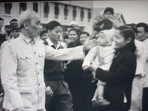 Bác Hồ đến thăm gia đình công nhân ở Trường Công nhân năm 1961