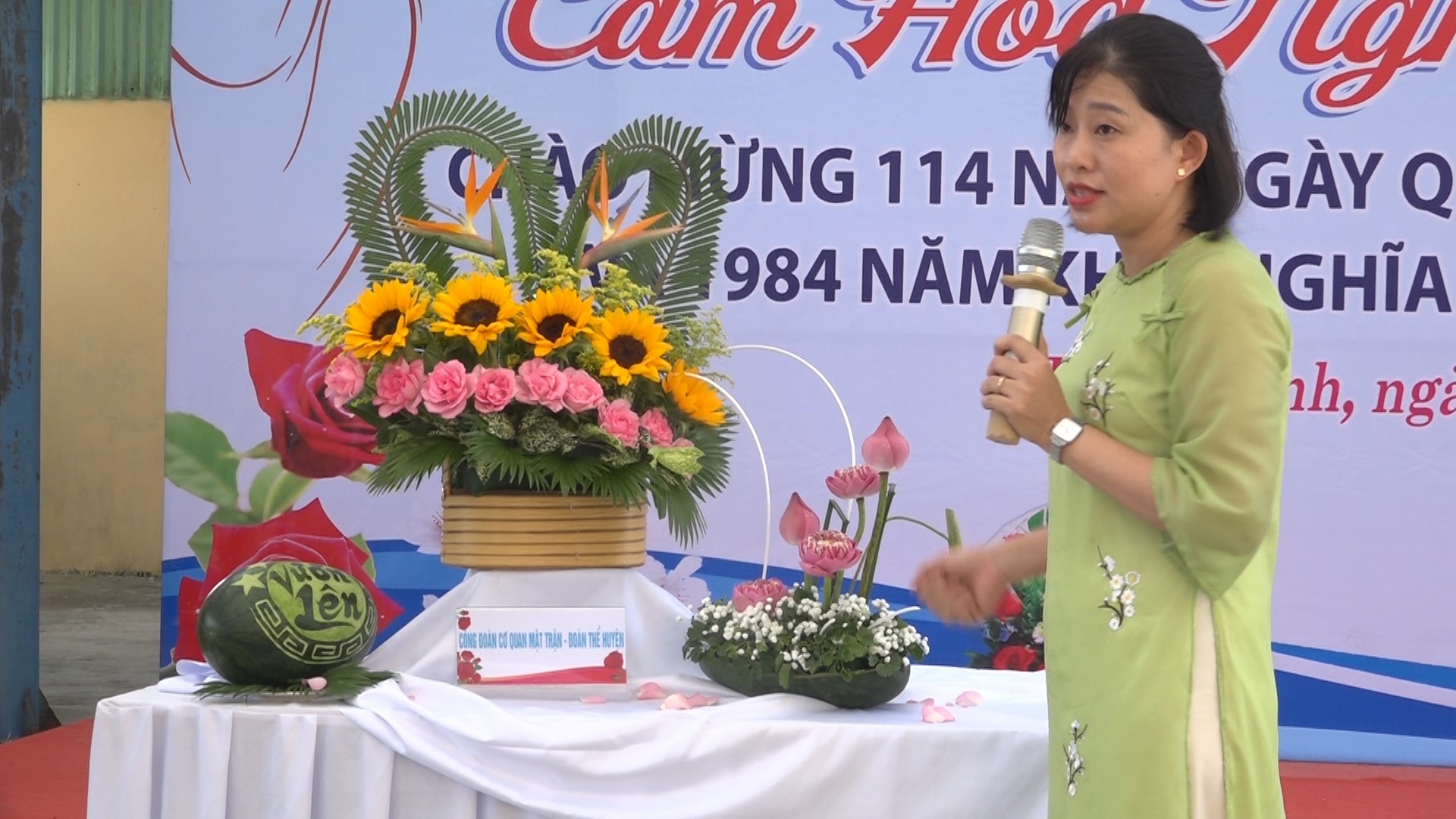 Hội thi với sự tham gia của 36 đơn vị đến từ xã, thị trấn và cơ quan hành chính- sự nghiệp cấp huyện với chủ đề “Tự tin- tự trọng- trung hậu- đảm đang”. Trong vòng 45 phút, các đơn vị dự thi chuẩn bị vật dụng, phụ kiện, thực hiện cắm hoa, tạo nên những lẵng hoa đẹp nhất, nghệ thuật nhất, mang ý nghĩa tôn vinh vẻ đẹp, phẩm chất tốt đẹp của người phụ nữ Việt Nam thời đại mới.