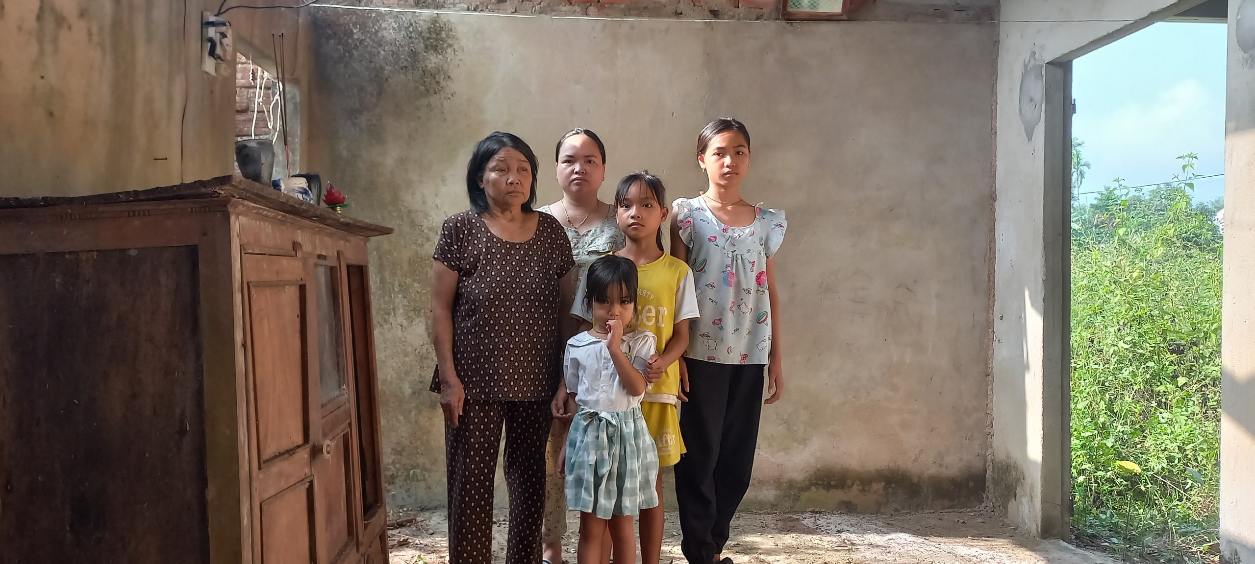 Bà Đoàn Thị Chơi - thôn Nam Bình Sơn (Bình Lãnh, Thăng Bình) và gia đình trước khi được hỗ trợ địa chỉ nhân đạo