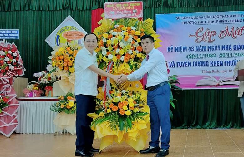 Phát biểu tại buổi lễ, đồng chí Nguyễn Văn Lượm - Bí thư Đảng ủy gửi lời tri ân sâu sắc đến đội ngũ thầy cô giáo – những người đang ngày đêm tận tụy cho sự nghiệp trồng người; biểu dương và ghi nhận những thành tích nổi bật mà nhà trường đạt được trong suốt thời gian qua. Đồng chí Bí thư Đảng ủy đánh giá cao những nỗ lực của tập thể nhà trường trong việc đổi mới phương pháp, nâng cao chất lượng dạy và học, đặc biệt là những thành tích nổi bật mà học sinh đạt được tại các kỳ thi học sinh giỏi và kỳ thi tốt nghiệp THPT, đồng thời mong muốn Trường THPT Thái Phiên tiếp tục phát huy truyền thống đoàn kết, giữ vững kỷ cương và bồi dưỡng thế hệ học sinh năng động, sáng tạo giúp các em không chỉ học kiến thức mà còn hình thành kỹ năng nghiên cứu khoa học độc lập và tư duy phản biện nhẹ bén khi còn ngồi trên ghế nhà trường.