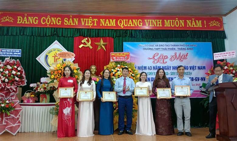 Tại buổi lễ, thầy giáo Đoàn Thanh Liêm – Hiệu trưởng nhà trường trao giấy khen cho 12 cá nhân hoàn thành xuất sắc nhiệm vụ; 20 Chiến sĩ thi đua cơ sở và 67 Lao động tiên tiến. Buổi gặp mặt là dịp tri ân các thế hệ thầy cô giáo, đồng thời thể hiện quyết tâm của nhà trường trong việc tiếp tục đổi mới, nâng cao chất lượng giáo dục, xây dựng môi trường học tập kỷ cương, thân thiện và sáng tạo./.