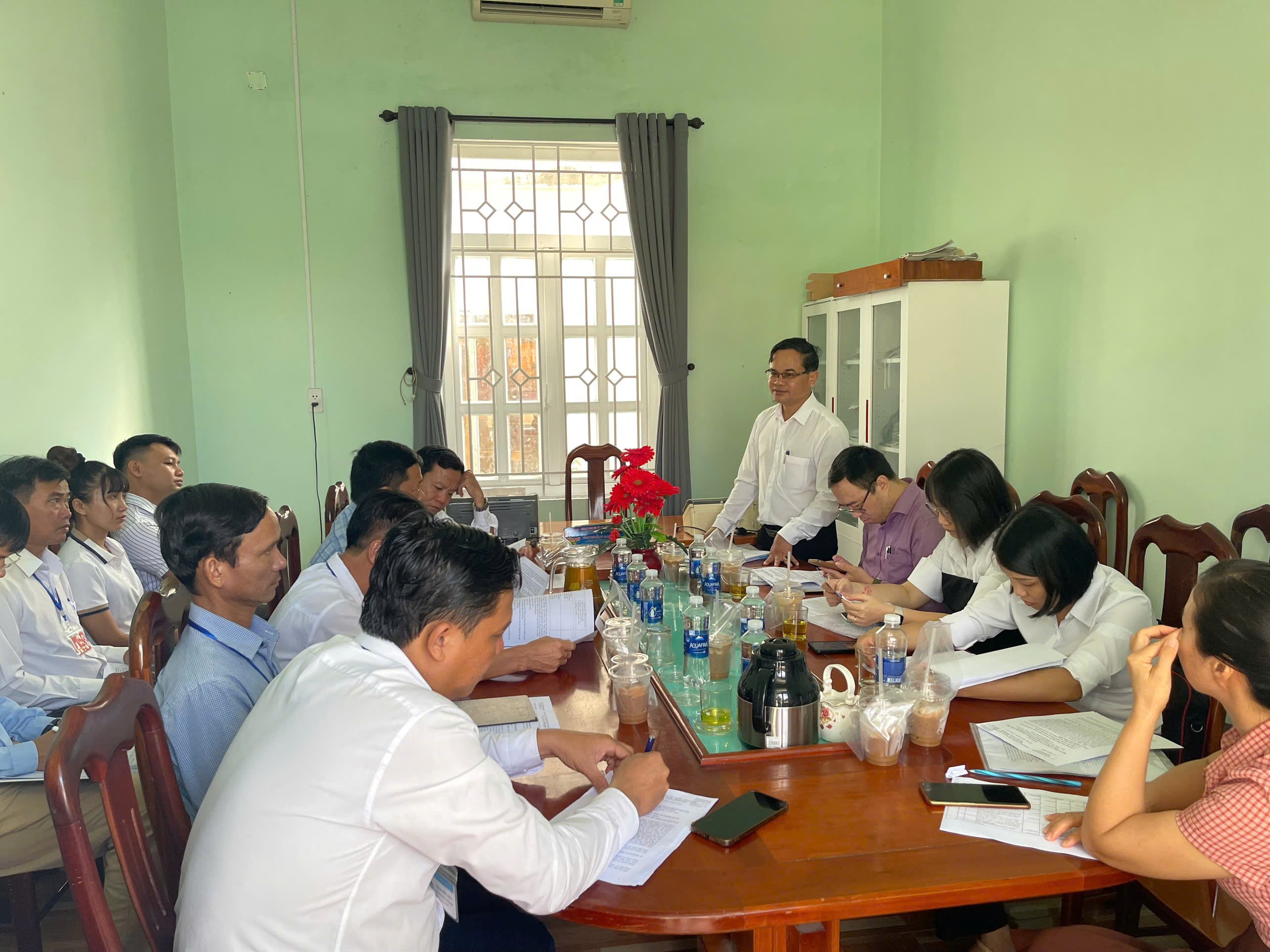 Quang cảnh làm việc của đoàn kiểm tra công các CCHC và CĐS huyện Thăng Bình tại xã Bình Dương