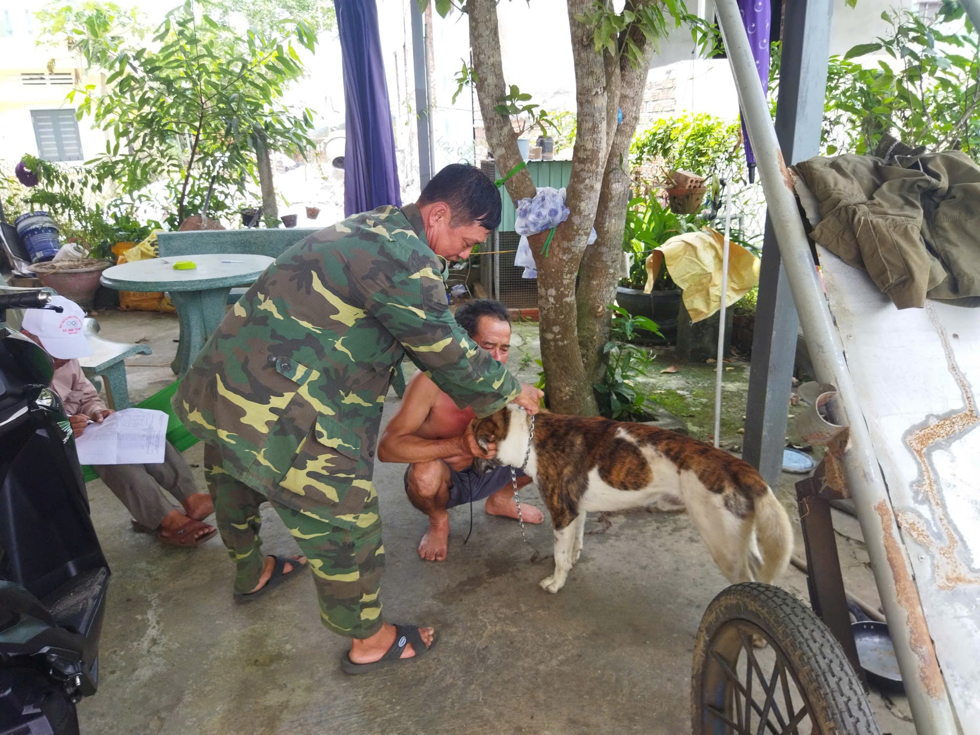 Lực lượng thú y xã Bình Trung đã tiêm 50% vắc xin dại trong tổng đàn chó mèo đã thống kê.