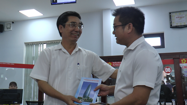 (Phó Chủ tịch UBND thành phố Đà Nẵng Trần Chí Cường tặng quà động viên cán bộ, công chức Trung tâm)