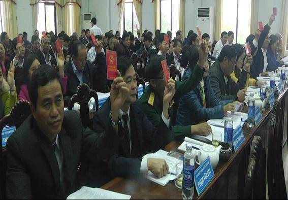 Ảnh: Các đại biểu biểu quyết thông qua nội dung kỳ họp thứ 3, HĐND huyện khóa XI.