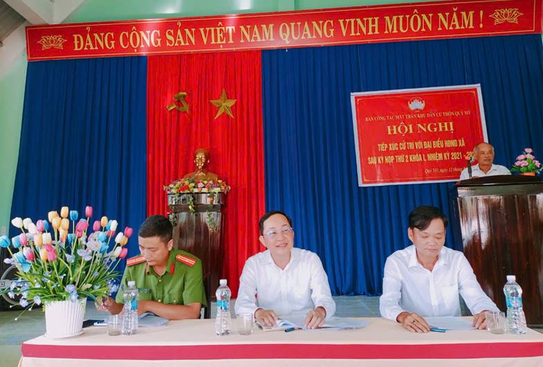 Tại buổi tiếp xú,c các cử tri đã nên lên những kiến nghị mong chính quyền xã mới quan tâm như: nâng cấp sửa chữa một số tuyến đường, cầu bị xuống cấp; xử lý nghiêm các trường hợp vi phạm hành lang an toàn giao thông; các vấn đề về việc đảm bảo vệ sinh môi trường; khơi thông hệ thống kênh mương đồng ruộng, giải quyết nhanh các thủ tục hành chính, nhất là trên lĩnh vực đất đại; tăng cường đảm bảo an ninh trật tự, chấn chỉnh tệ nạn cờ bạc, khai thác cát trái phép...