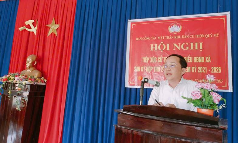 Tại buổi tiếp xúc, cử tri thôn Quý Mỹ nghe thông tin một số nội dung chính của các kỳ họp thứ nhất và kỳ họp thứ hai HĐND xã khóa I (nhiệm kỳ 2021-2026) như: Kết quả thực hiện nhiệm vụ 02 tháng (7 và 8/2025) sau khi thực hiện chính quyền địa phương 02 cấp; một số nhiệm vụ, giải pháp phát triển kinh tế - xã hội, bảo đảm quốc phòng - an ninh các tháng cuối năm 2025; các nghị quyết đã được Hội đồng nhân dân xã ban hành và một số nội dung khác.