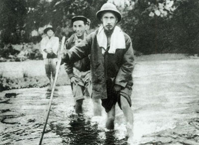 Bác Hồ đi công tác ở Chiến khu Việt Bắc. Ảnh tư liệu