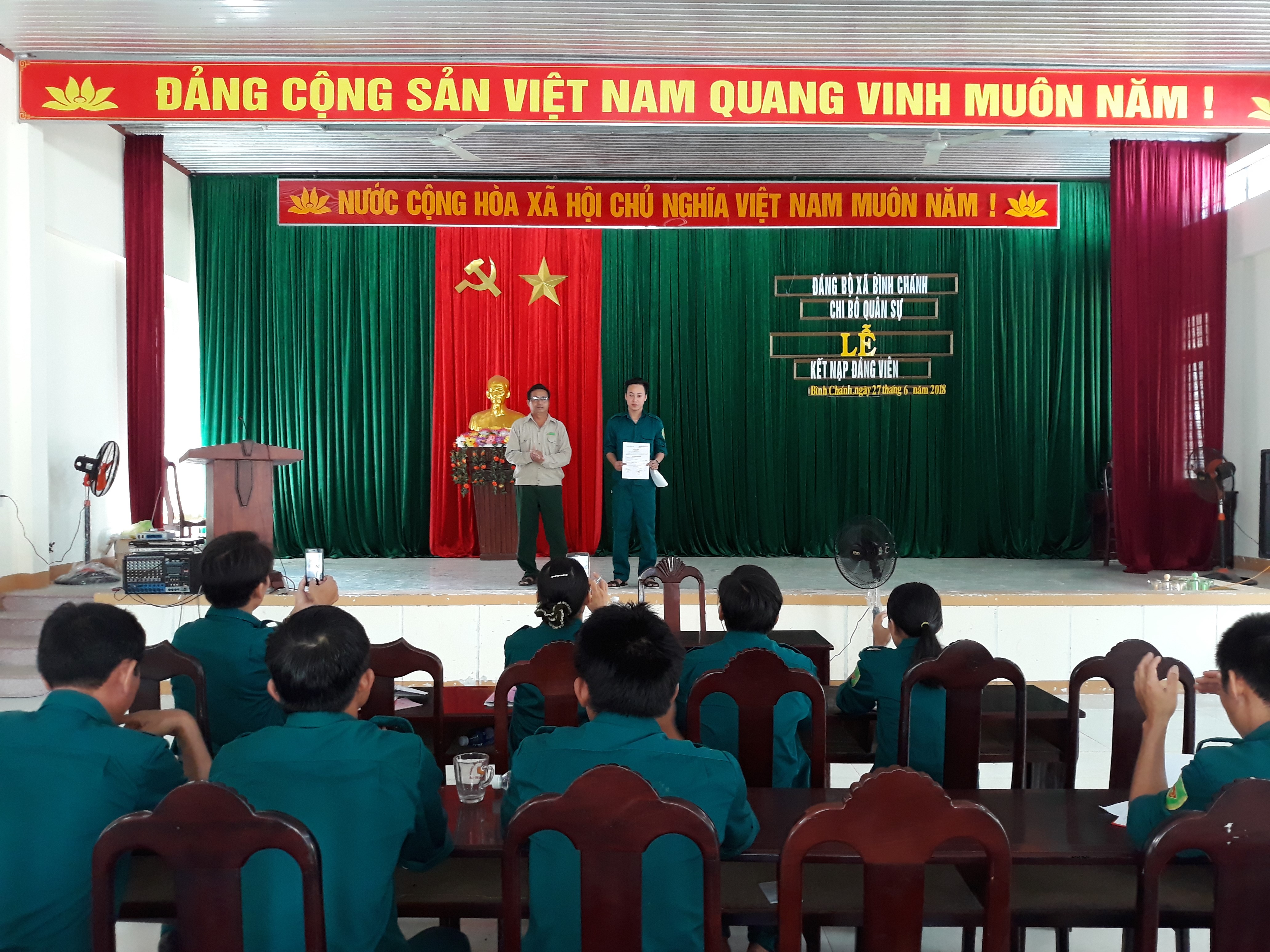 Lễ kết nạp đảng viên ở Chi bộ Quân sự xã Bình Chánh